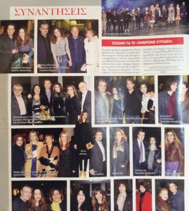November 25, 2015Επίσημη πρεμιέρα για το “Ξημερώνει Κυριακή” και το “Narcissus” ήταν εκεί. Μια υπέροχη βραδιά πλημμυρισμένη από τα τραγούδια των Μίμη Πλέσσα και Λευτέρη Παπαδόπουλου. Το κατάμεστο θέατρο, χειροκρότησε με θέρμη τους πρωταγωνιστές και τους συντελεστές, μεταξύ αυτών και ο δερματολόγος Στέλιος Αγγελίδης με τη σύζυγό του Αγγελική Αγγελίδη.